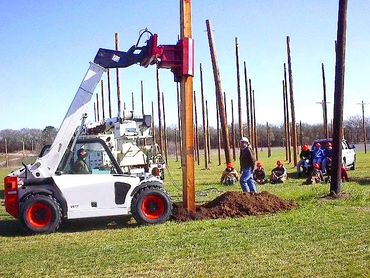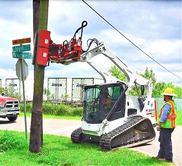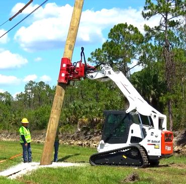 The EZ Spot UR HEAVY DUTY POLE SETTER is designed to handle big, heavy utility poles up to 45 feet long. With the Heavy Duty Pole Setter, the operator can pick up a pole from the ground or a trailer and rotate completely vertical. At this point the operator can easily position the pole the way he wants, without any effort, and with complete safety. Call us at (877) 433-5733 to learn why our HD Pole Setter remains one of our top sellers!