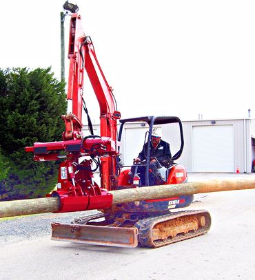 The EZ-Spot-UR, Inc Heavy Duty Pole Setter is designed to handle big, heavy utility poles up to a 45 foot Class 1 pole. With the Heavy Duty Pole Setter, the operator can easily pick up a pole on the ground or a trailer and quickly rotate it to a vertical position. This allows the operator to position the pole as desired with minimal effort and with a secure clamp. The “Big Bertha” offers 115° rotation and the jaws open to 20.5 inches and close down to 5 inches**.
