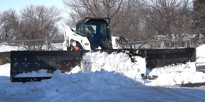 Plow large or small areas with the EZ Spot UR Snow Plow. With its folding design, there are three different widths you can hydraulically set for the plow: 20' wide fully extended, 14.2' wide with one side folded, and 8.5' wide with both sides folded. At 36" high, the EZ Spot UR Snow Plow provides great visibility for the operator while still being able to smash through deep drifts. The Snow Plow is equipped with the universal quick tach for use on a skid steer, but can be adapted to fit on wheel loaders, excavators, telehandlers, backhoes, or any other type of machine by using a special bolt-on mount.